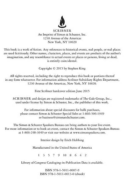 Although the list price is $30, this title can is/was available for around $18 at most major bookstores. It is the second volume in a trilogy focusing on Detective Bill Hodges. The book's cover was revealed on King's official site on January 30 2015. An excerpt was published in the May 15, 2015 issue of Entertainment Weekly