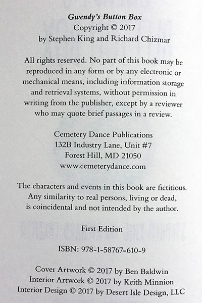 There is version of this book with an alternate cover, It's a BC edition released in June 2017 by a book club called The Noctrunal Reader's Box that specializes in sending a grab bag of horror related items each month. Included in the June bag was a copy of Gwendy's Button Box with an alternate cover and a special "Maine Coin" which seems to be selling on eBay for around $100.