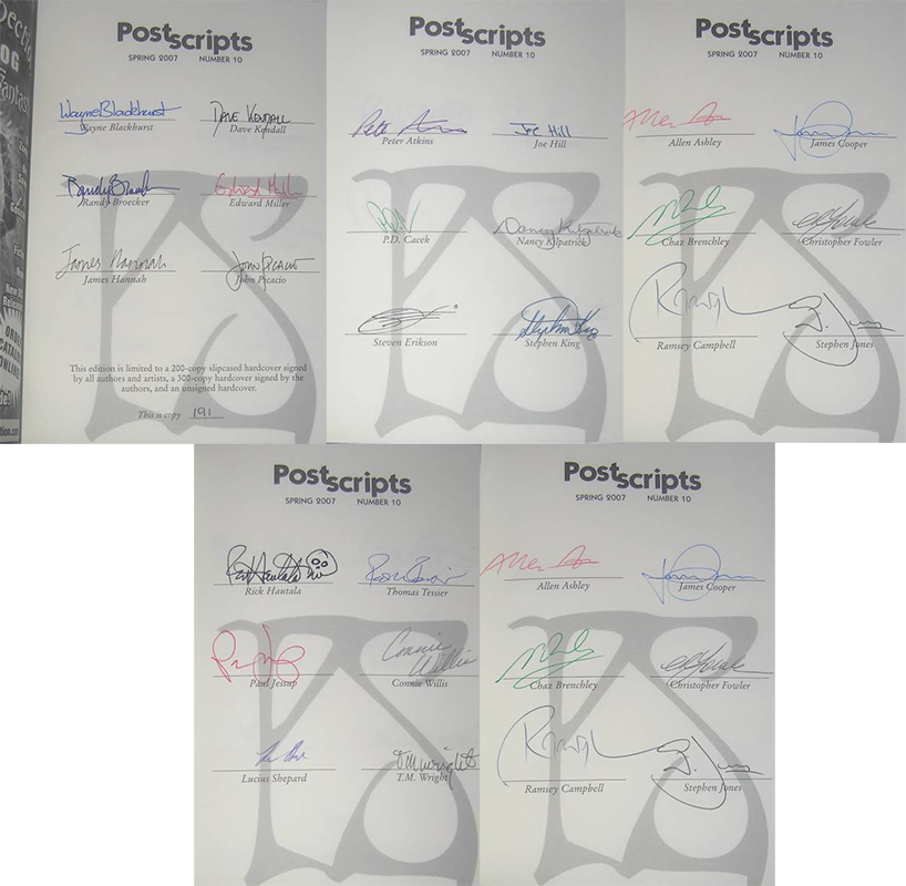 - Signed hardcover edition limited to 300 copies signed by the 25 authors including Stephen King and Joe Hill. Issue Price = £25/$50