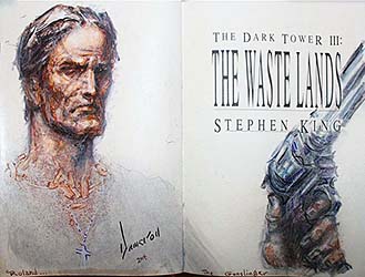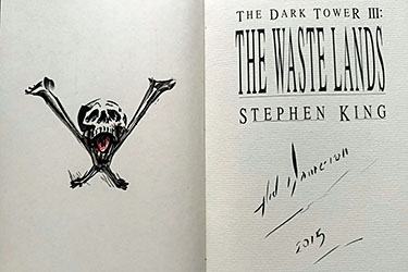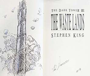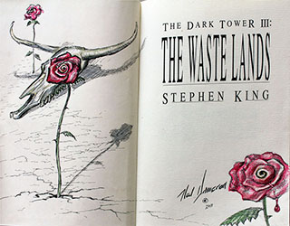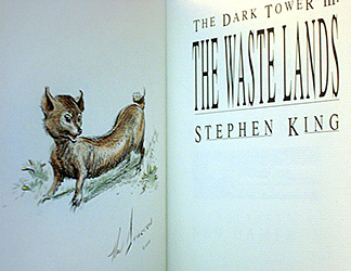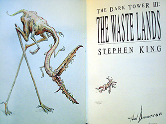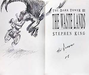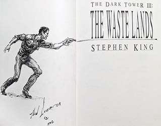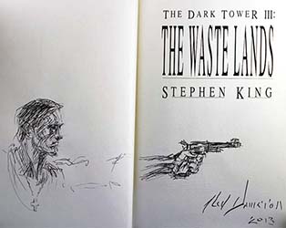 In July of 2009, artist Ned Dameron announced he would be doing remarques in twenty-one copies of the Grant first edition of The Waste Lands. Over a period of about 18 months, Dameron (who produced the original illustrations for the book) released these for sale via eBay. Each remarque was numbered and signed by the artist.
