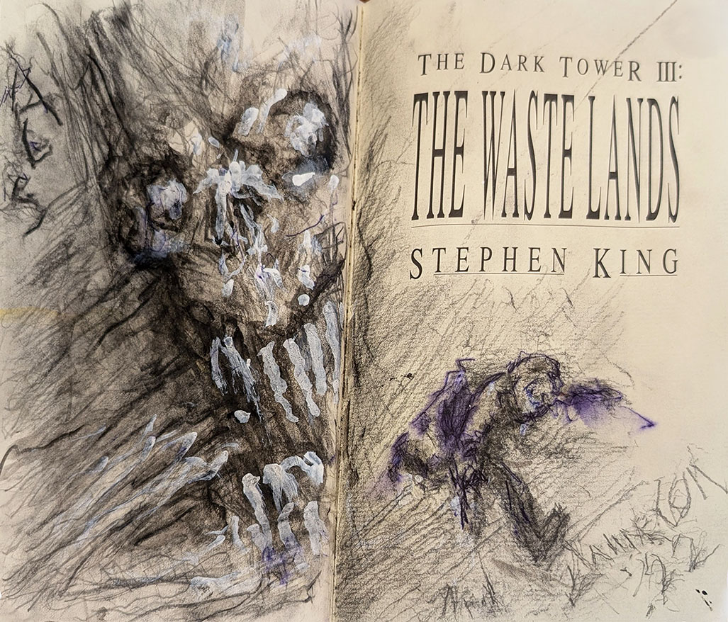 In July of 2009, artist Ned Dameron announced he would be doing remarques in twenty-one copies of the Grant first edition of The Waste Lands. Over a period of about 18 months, Dameron (who produced the original illustrations for the book) released these for sale via eBay. Each remarque was numbered and signed by the artist.