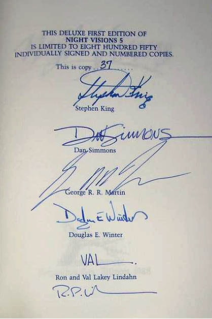 - Limited edition of 850 copies, issued with slipcase. Signed by all contributors including Stephen King. Issue Price = $75