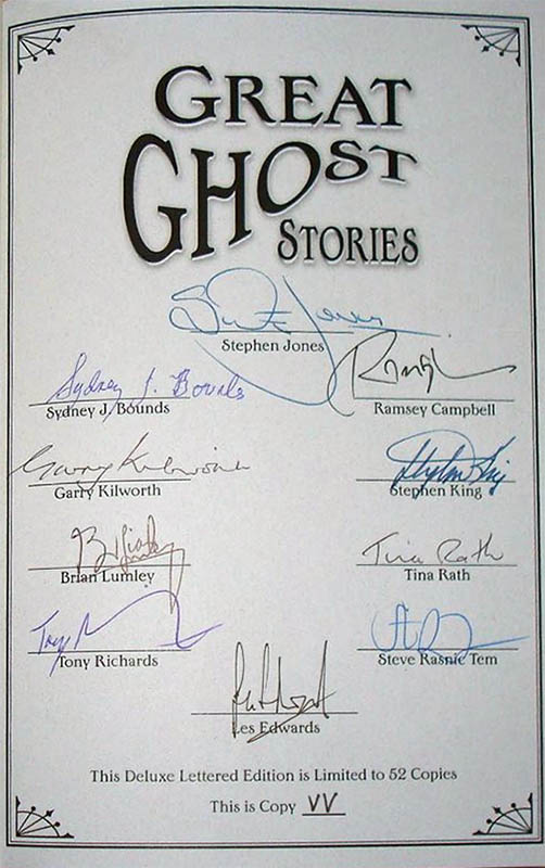 - Lettered Edition: 56 copies, hardback, issued in a red leather traycase. Signed by multiple contributors including Stephen King. Issue Price = $500